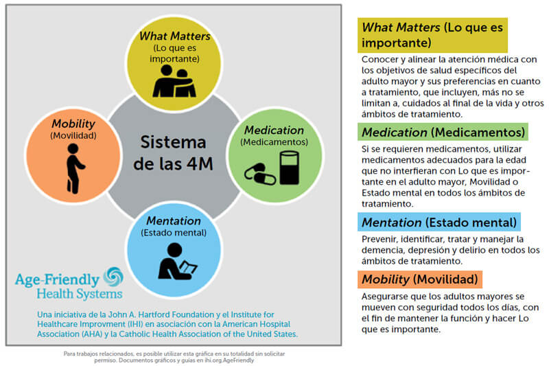 Sistema de las 4Ms para un sistema de atención a la salud adecuado para la edad. |
